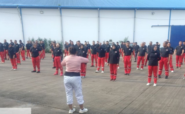 Giat di pimpin Oleh Bpk. Afdanil ( Manager Operasional PT. MDY ) dan Tiga orang Instruktur senam